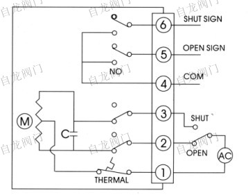 上海自龍閥門制造有限公司 精小型電動執(zhí)行器接線 一、什么是精小型電動執(zhí)行器 精小型電動頭是上世紀九十年代末發(fā)明的新型電動執(zhí)行器,較比老型的電 動執(zhí)行器精小型電動頭采用上裝式結(jié)構(gòu),在高壓、大口徑條件下減少了閥體自 身的連接螺栓,增強了閥門的可靠性且能克服系統(tǒng)自重對閥門正常工作的影 響。使得電動閥門自身重量減輕,克服了安裝管道承重過大,維修、更換過于 笨重的問題。  上海自龍閥門制造有限公司生產(chǎn)的精小電動執(zhí)行器分為開關(guān)型電動執(zhí)行器, 無源型電動執(zhí)行器,調(diào)節(jié)型電動執(zhí)行器,智能型電動執(zhí)行器,型號分別為ZL- 05,ZL-10,ZL-20,ZL-40W,ZL-60,ZL-100,ZL-200,ZL-05A,ZL-10A, ZL-20A,ZL-40A,ZL-60A,ZL-100A,ZL-200A系列電動執(zhí)行機構(gòu)適用于部分 回轉(zhuǎn)類閥門(如蝶閥、球閥和風(fēng)門擋板等),采用優(yōu)質(zhì)鋁合金壓鑄件外殼,精 細流暢,體積小重量輕、免維護、耐腐蝕性強等優(yōu)良性能,可在狹窄地方使 用。精小型開關(guān)型、無源觸點型電動頭,ZL-40W精小型電動執(zhí)行器廣泛應(yīng)用于 樓宇自動化、水利、造紙、電力、化工等自動化控制系統(tǒng)。  1、功能強勁:智能型、比例式、開關(guān)式、各類信號輸出型應(yīng)有盡有 2、體積小巧:體積僅相當于同類產(chǎn)品的35%左右 3、輕便宜人:重量僅相當于同類產(chǎn)品的30%左右 4、性能可靠:軸承牙口電氣元件等關(guān)鍵零部件采用進口名牌產(chǎn)品 5、美觀大方:鋁合金壓鑄外殼、精細流暢、且可減少電磁干擾 6、精密耐磨:蝸輪輸出軸一體化特殊錒合金鍛造、強度高、耐磨性好 7、回差極?。何佪嗇敵鲚S一體化、避免了鍵聯(lián)結(jié)的間隙、傳動精度高 8、安全保證:小型電動執(zhí)行器通過1500V耐壓檢測,F(xiàn)級絕緣電機,安全有保障 9、配套簡單:小型電動執(zhí)行器采用單相電源、外接線路特別簡單,也可做380V、直流電源 10、使用方便:免加油、免點檢、防水防銹、任意角度安裝 11、保護裝置:雙重限位、過熱保護、過載保護(選裝) 12、多種速度:小型電動執(zhí)行器全行程時間5秒、10秒、15秒、30秒、60秒、100秒等 13、防腐防銹:支架、聯(lián)軸器、螺釘均采用不銹鋼 14、智能數(shù)控:小型電動執(zhí)行器數(shù)字設(shè)定、數(shù)字整定、高度精確、自診斷、一機多能 15、集成一體:小型電動執(zhí)行器智能控制模塊高度集成于電動裝置本體中,無須外接定位器等 二、精小型電動執(zhí)行器接線方法 下面是精小型電動頭中最常見的一種執(zhí)行器,采用的是無源觸電接線  圖中1號是零線,2號、3號是火線,執(zhí)行器采用的是齒輪順時針轉(zhuǎn)動與逆時 針轉(zhuǎn)動原理,1與2相連是閥門開啟,1與3相連是閥門關(guān)閉,作為無源觸點電動 執(zhí)行器,執(zhí)行器本身還有信號反饋的功能,如圖,4、5、6,對應(yīng)的是1、2、 3。如有需要安裝反饋信號指示燈,請按照1、2、3的接線進行對應(yīng)接線。 精小型電動頭作為簡單便捷的電動執(zhí)行器,其應(yīng)用范圍很廣泛,廣泛應(yīng)用于 樓宇自動化、水利、造紙、電力、化工等自動化控制系統(tǒng)。我公司專業(yè)生產(chǎn)與 設(shè)計各類執(zhí)行器,歡迎來電詢問:021-5160 1991 m.xzz003.com