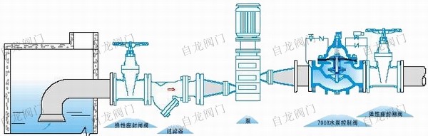 上海自龍閥門制造有限公司生產(chǎn)的700X水泵控制閥由主閥、電磁導(dǎo)閥、針閥、球閥、單向閥、行程開(kāi)關(guān)、微形過(guò)濾器和壓力表組成水力控制接管系統(tǒng)。水泵需停止工作時(shí),先由進(jìn)口壓使主閥關(guān)閉90%后,水泵停止運(yùn)轉(zhuǎn)。剩余10%由回水關(guān)閉??煞乐顾N現(xiàn)象發(fā)生。700X多功能水泵控制閥利用電磁導(dǎo)閥控制,不需要其它裝置和能源。節(jié)約能源,保養(yǎng)簡(jiǎn)便,停泵平穩(wěn)。電磁閥可采用交流電220V或直流電24V。700X多功能水泵控制閥產(chǎn)品廣泛用于高層建筑、生活區(qū)等供水管網(wǎng)系統(tǒng)及城市供水工程。當(dāng)水泵工作閥門向下游供水時(shí),電磁導(dǎo)閥全開(kāi),針閥調(diào)至適當(dāng)開(kāi)度,上游水經(jīng)針閥、單向閥進(jìn)入主閥控制室,經(jīng)電磁導(dǎo)閥流出,此時(shí)主閥控制室的壓力保持主閥處于合適的開(kāi)度,保持下游正常供水。當(dāng)水泵停止工作時(shí),電磁導(dǎo)閥先關(guān)閉,主閥控制室停止排水,控制室壓力升高,主閥開(kāi)始關(guān)閉。當(dāng)關(guān)閉至90%時(shí),主閥上部行程開(kāi)關(guān)輸出停泵信號(hào),水泵停止運(yùn)轉(zhuǎn)。此時(shí)下游回水經(jīng)單向閥進(jìn)入主閥控制室,控制室壓力升高,主閥被關(guān)閉。