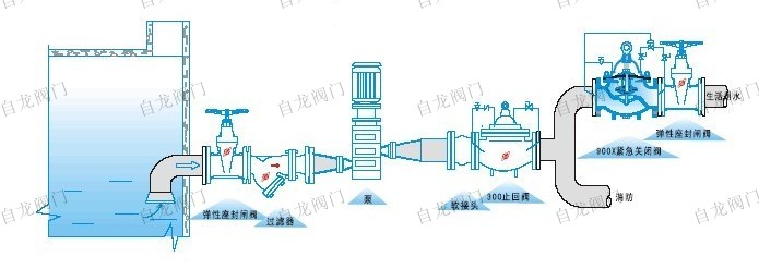 上海自龍閥門制造有限公司生產(chǎn)的900X緊急關(guān)閉閥用于生活供水和消防供水并聯(lián)供水系統(tǒng)中,正常情況供生活用水,當(dāng)火災(zāi)發(fā)生時(shí)消防用水時(shí),閥門自動(dòng)關(guān)閉生活用水,確保足夠的消防用水。當(dāng)消防停止用水時(shí)壓力減少,閥門自動(dòng)恢復(fù)生活用水,該閥使系統(tǒng)無須另設(shè)專門的消防單獨(dú)供水管網(wǎng),大大地節(jié)省了工程建設(shè)成本和日常的用水量。該閥控制靈敏、安全可靠、調(diào)試簡單、使用壽命長。