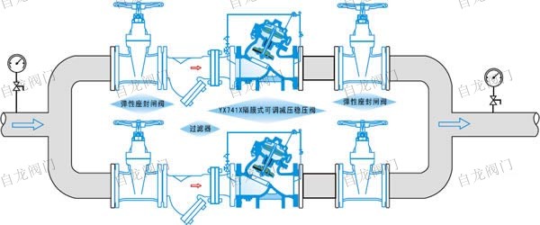 上海自龍閥門制造有限公司生產(chǎn)的YX741X可調(diào)式減壓穩(wěn)壓閥一般安裝在供水管網(wǎng)系統(tǒng)的上游,實現(xiàn)對其下游管網(wǎng)或裝置的減壓穩(wěn)壓功能。YX741X可調(diào)式減壓穩(wěn)壓閥產(chǎn)品廣泛用于高層建筑、生活區(qū)域或其它供水管網(wǎng)系統(tǒng)的水壓控制。有隔膜式與活塞式可選。
