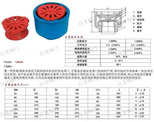 1、該產(chǎn)品安裝在人防工程的排水管道處,平時(shí)地漏處于開(kāi)啟狀態(tài),保證正常排水。戰(zhàn)時(shí)地漏漏蓋下降,逆時(shí)針旋緊后封閉排水口,防止沖擊波,毒氣進(jìn)入人防區(qū),并可遏止地下水倒灌。