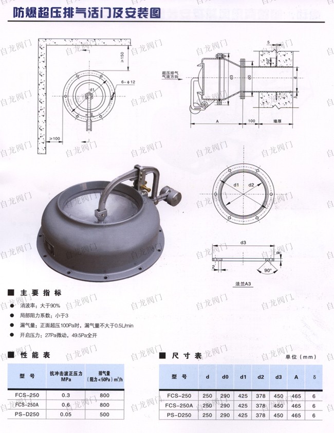 上海自龍閥門制造有限公司生產(chǎn)的超壓防爆排氣活門用于各級防空地下室的排風(fēng)口部,可直接代替由原普通防爆波活門和自動排氣活門組成的排風(fēng)消波系統(tǒng),也可單獨作超壓排氣活門使用。