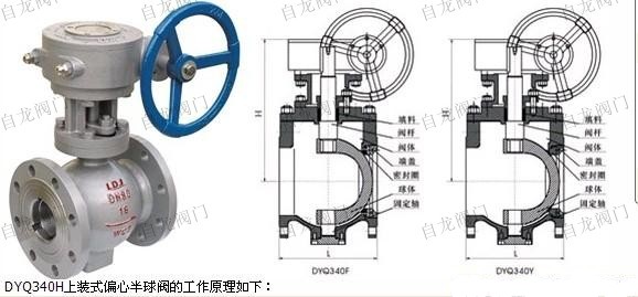 閥門型號:上裝偏心半球閥系列型號有DYQ340H、DYQ340Y、DYQ340F;側(cè)裝偏心半球閥系列型號有PQ640H、PQ640Y、PY640F。