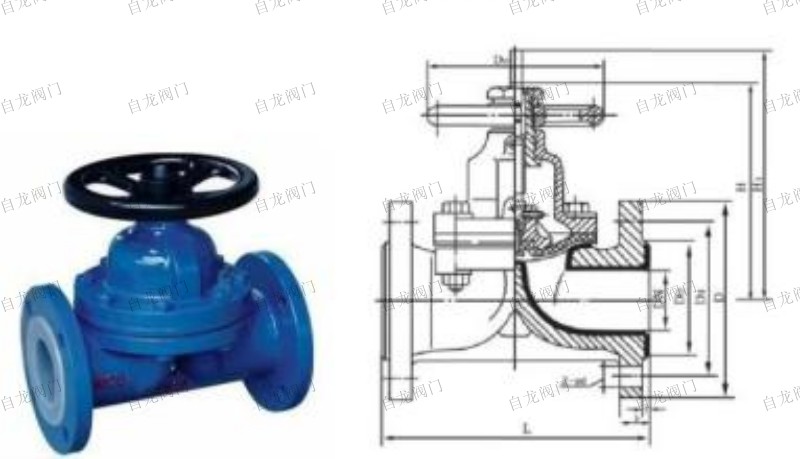 上海自龍閥門(mén)制造有限公司生產(chǎn)的襯氟隔膜閥G41F46,復(fù)合隔膜將閥體下部?jī)?nèi)腔與閥蓋內(nèi)腔隔開(kāi),并與之形成直流通道,使隔膜上部的閥桿、閥瓣等內(nèi)件與介質(zhì)完全隔離,省去填料密封結(jié)構(gòu),介質(zhì)的內(nèi)漏和外漏可同時(shí)避免。做為執(zhí)行元件的膜片由于頻繁的啟閉易產(chǎn)生疲勞斷裂,應(yīng)視工況、介質(zhì)特性進(jìn)行定期更換。