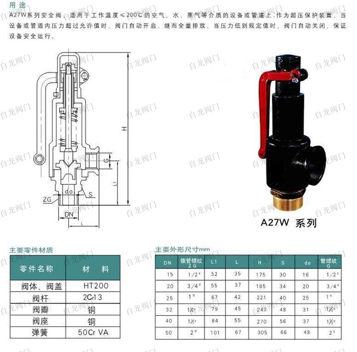 A27W-10T適用于工作溫度≤200℃的空氣、蒸汽、水、氮氫混合氣等介質的設備或管路上。