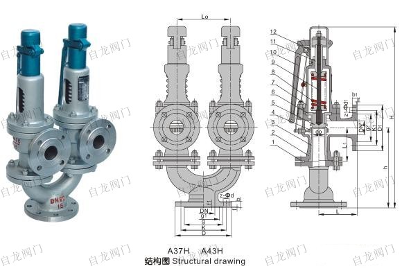 上海自龍閥門制造有限公司生產(chǎn)的A38Y、A43H、A37H雙聯(lián)彈簧式法蘭安全閥指依靠彈簧的彈性壓力而將閥的瓣膜或柱塞等密封件閉鎖,一旦當(dāng)壓力容器的壓力異常后產(chǎn)生的高壓將克服安全閥的彈簧壓力,所以閉鎖裝置被頂開,形成了一個泄壓通道,將高壓泄放掉。根據(jù)閥瓣開啟高度不同又分為全起式和微起式兩種。全起式泄放量大,回彈力好,適用于液體和氣體介質(zhì),微起式只宜用于液體介質(zhì)。