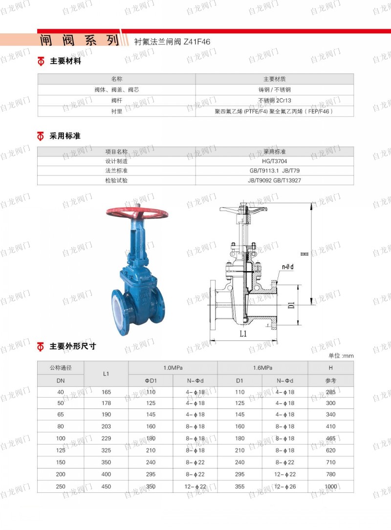 名    稱: 防腐蝕襯氟閘閥Z41F46、Z41F3