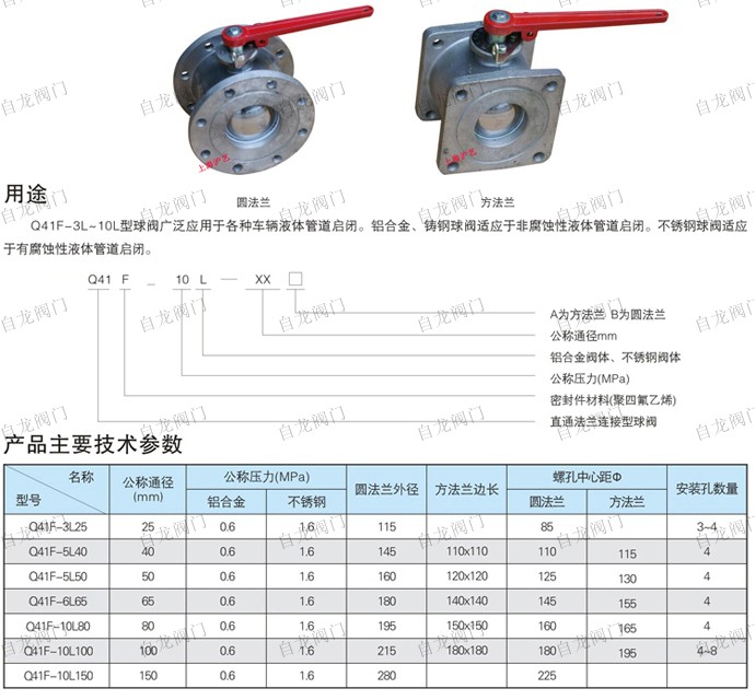 上海自龍閥門制造有限公司生產(chǎn)的鋁合金球閥又名鋁合金槽車球閥,按外形結(jié)構(gòu)可分為鋁直通槽車方球閥和鋁直通槽車圓球閥,采用鋁合金殼體,不銹鋼球芯,具有結(jié)構(gòu)緊湊,重量輕,體積小,使用方便等優(yōu)點,設(shè)有限位和加鎖裝置,安全可靠。廣泛用于非腐蝕性液體輸送管道開閉控制(如油罐車,加油站等)旋轉(zhuǎn)法蘭內(nèi)密封座可調(diào)整板桿輕重和消除滲漏,當密封環(huán)與球面部位有損傷時,要修正其密封面或者更換。